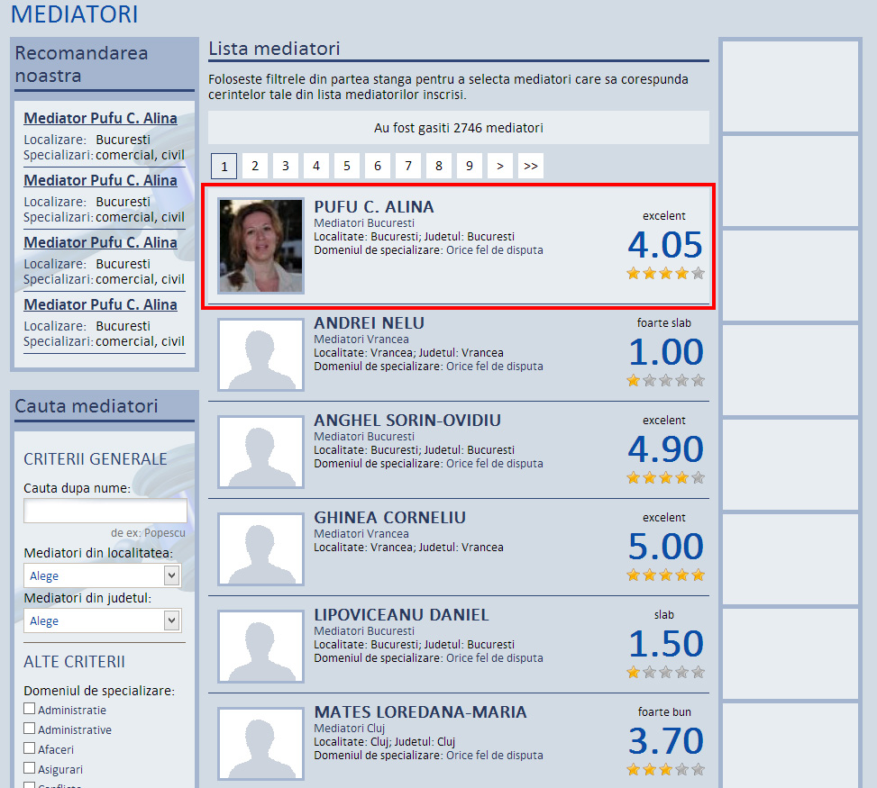 - posibilitatea de a fi contactat direct din websiteul www.listamediatori.ro, prin email, telefon sau alte modalitati (Facebook, Twitter etc)